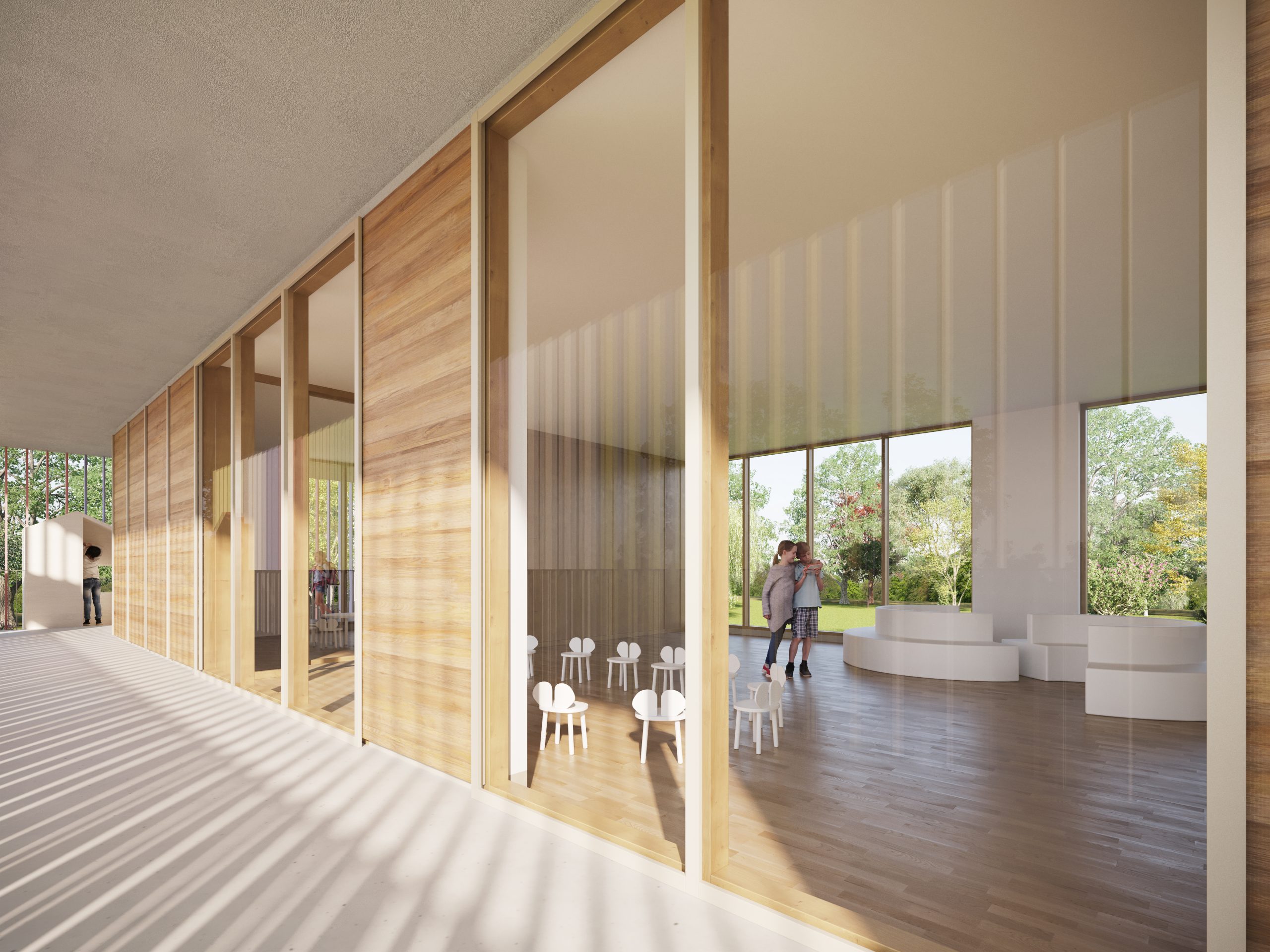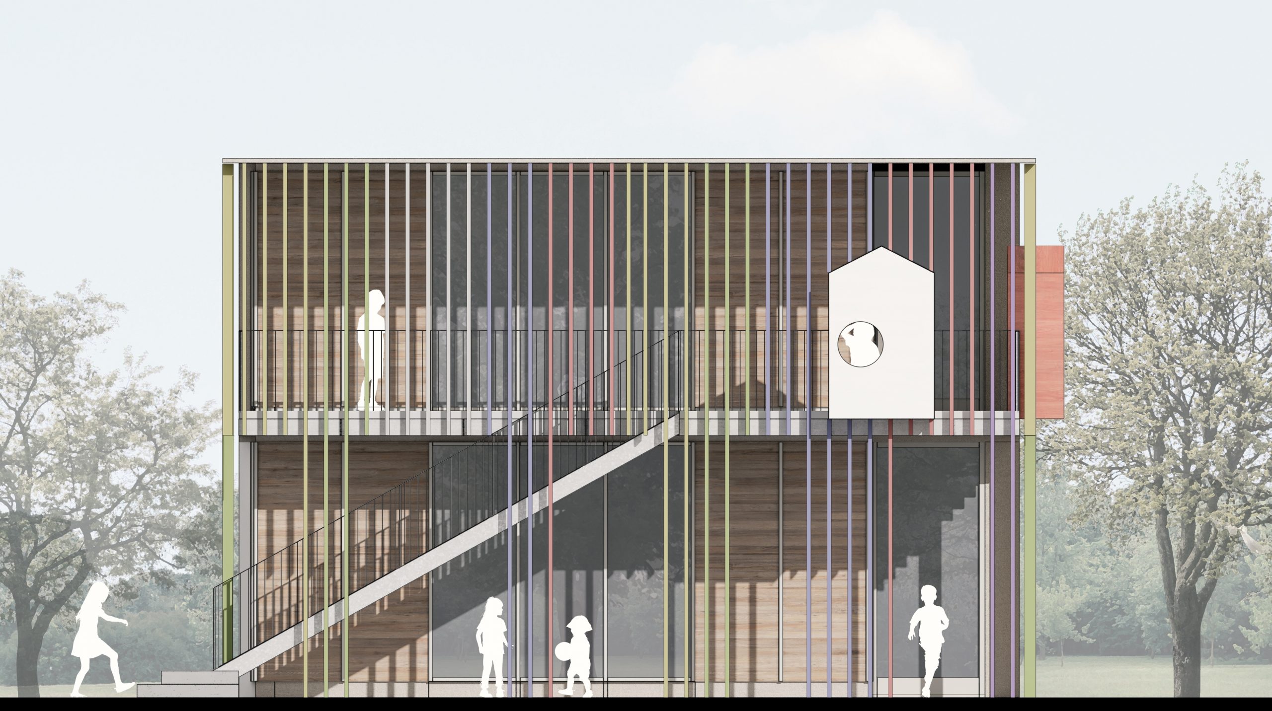 Eine Generalsanierung des denkmalgeschützten Schulgebäudes mit Sporthalle, Mensa, Außenanlagen, bietet neue Großzügigkeit in geschütztem Bestand.