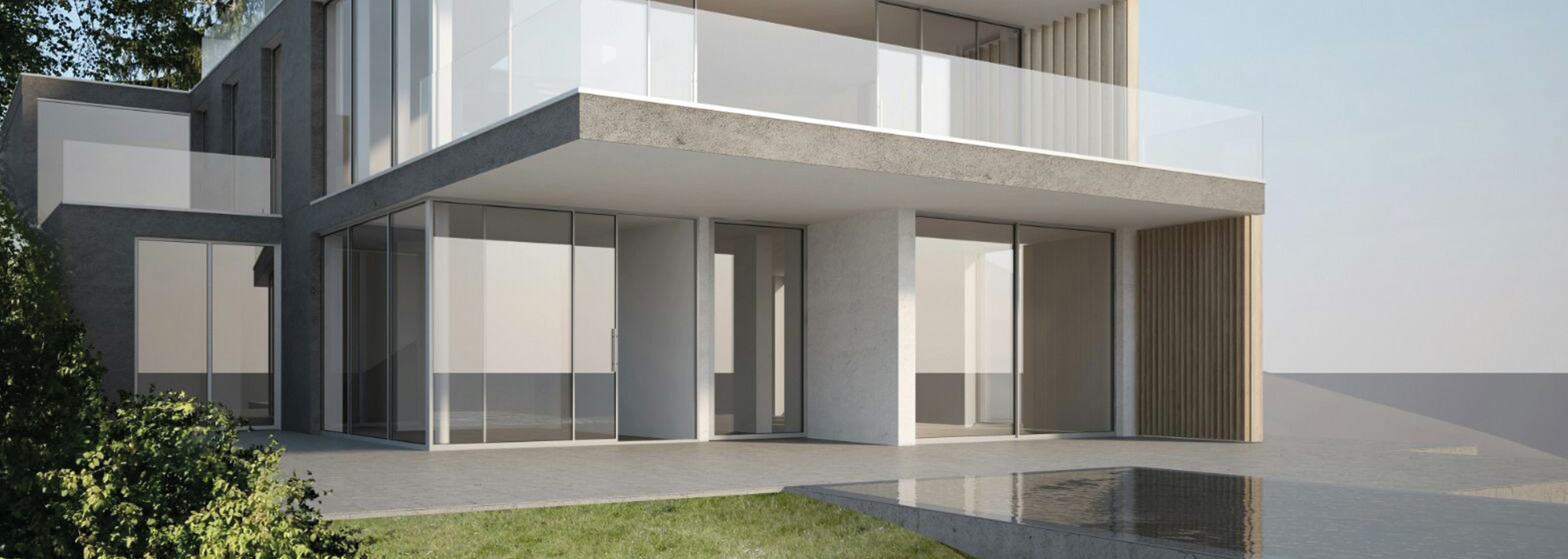Neubau eines Einfamilienwohnhauses mit offenen Glasfronten für einen weiten Blick und Interior Design, dessen Entwurf wir liefern durften mit einer Teilausführung.