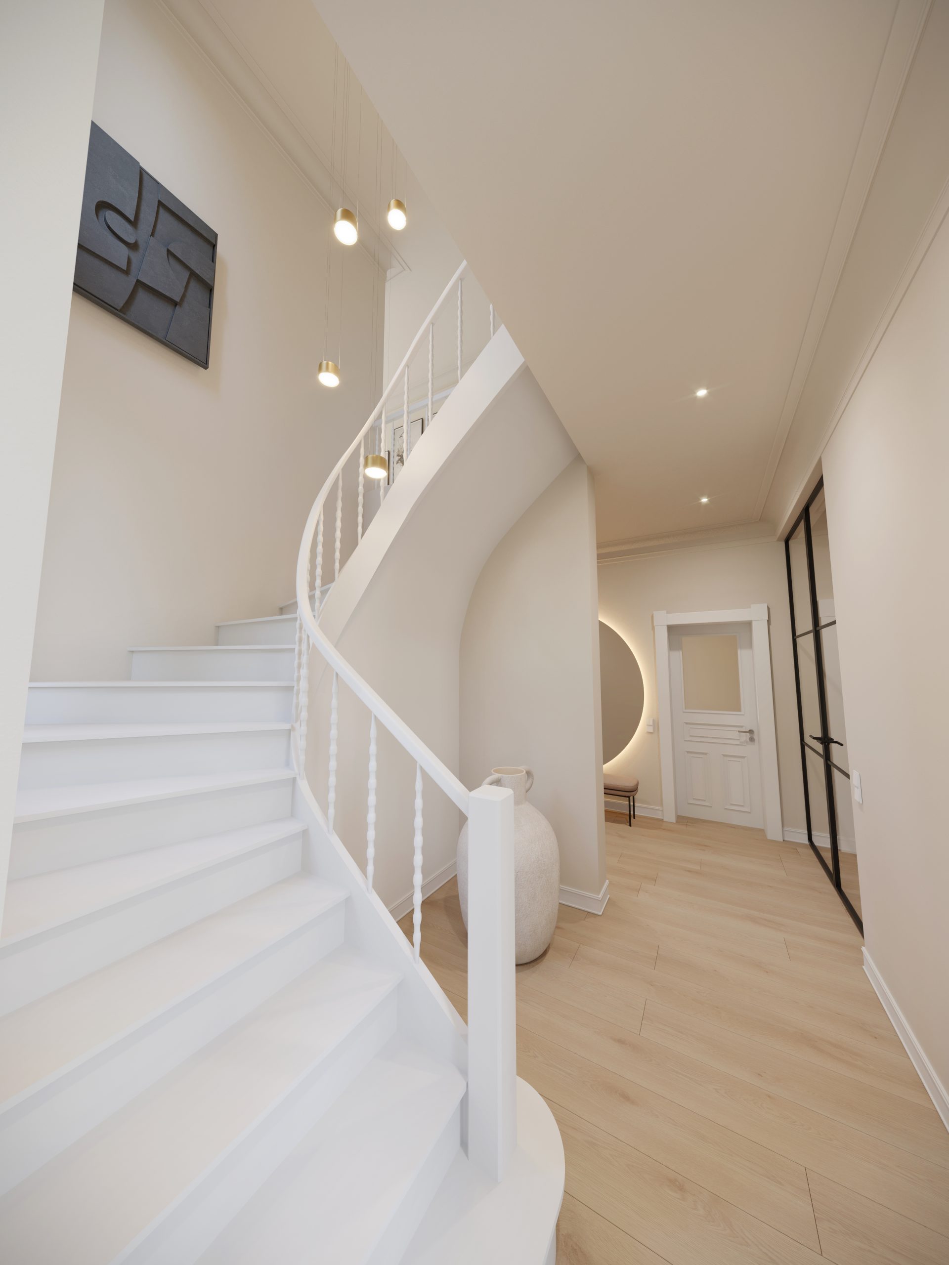 Neubau eines Einfamilienhaus mit Interior Design, das minimalistischen Freiraum verkörpert.